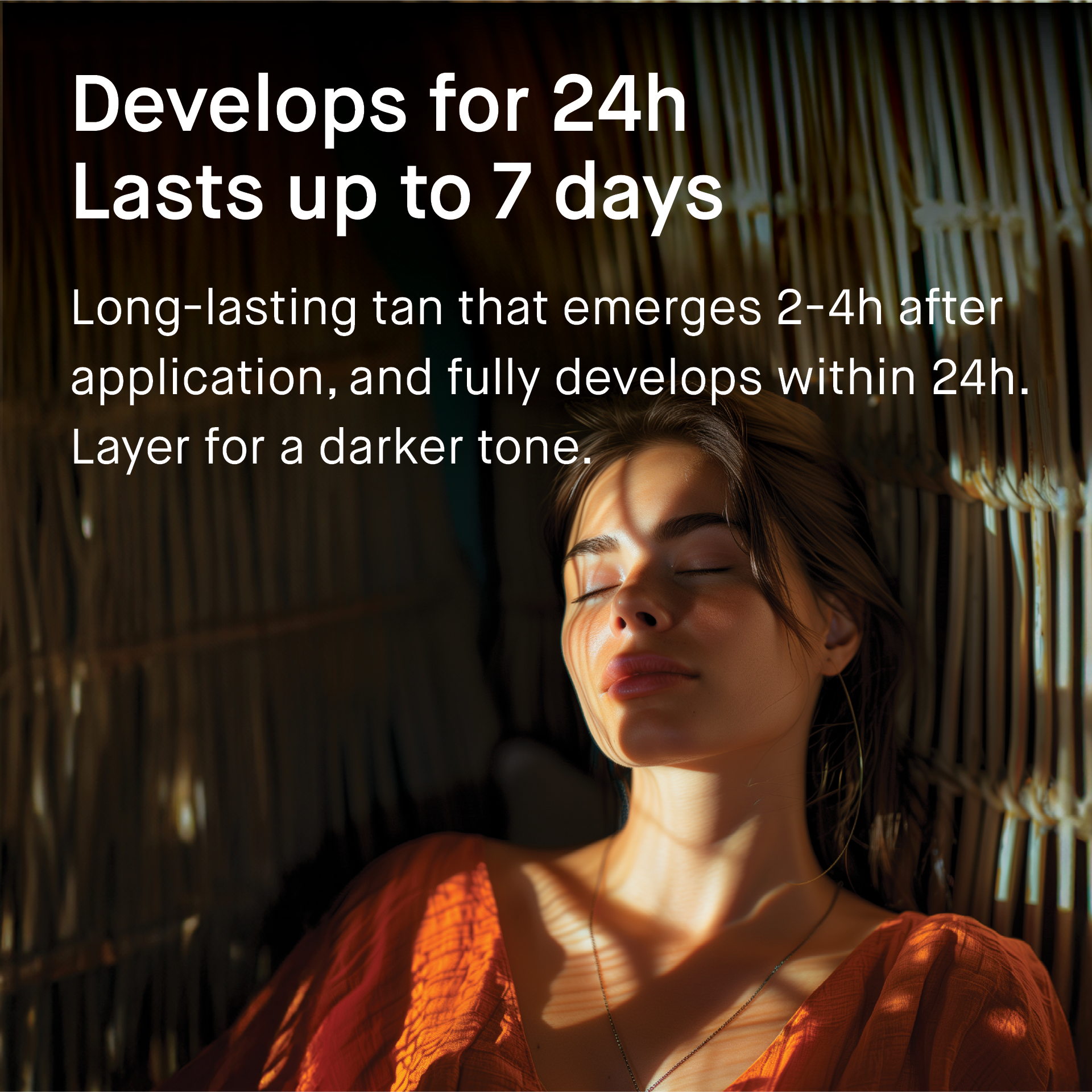 - Für optimale Ergebnisse beginnen Sie mit der Anwendung mindestens eine Woche vor dem Sonnenbad. Setzen Sie die Anwendung während des Sonnenbads fort. Um Ihre Bräune zu verlängern, verwenden Sie das Produkt einige Wochen nach dem Sonnenbad oder so lange Sie möchten.